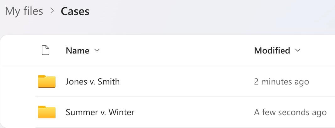 Our software leverages secure, industry leading Microsoft OneDrive file storage. Your clients can securely upload materials, exhibits, briefing, pictures, or any other file to you. Each folder and subfolder is automatically created. You will have everything in one spot.