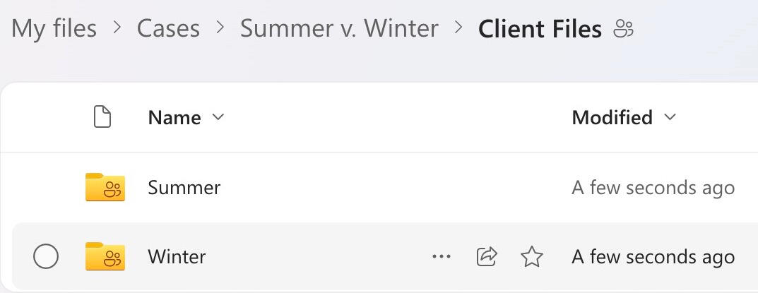 Each client will receive a unique link and password to their secure file storage in OneDrive. For mediations, each client's folder is private from other parties to that case. For arbitrations, each client's folder is viewable by all parties. You can adjust these permissions on a case by case basis.